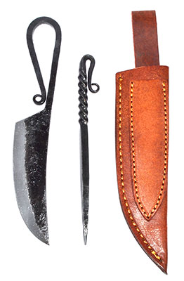 This two-piece medieval feast set is perfect for adding a touch of authenticity to your knife collection. The set includes a knife and a picker, both designed with a medieval-inspired aesthetic. The knife features a sturdy blade that was used for cutting through meats and other foods, while the picker is ideal for skewering and serving appetizers. Knife measures 8" and is treated with oil of which you will have to clean prior to use.